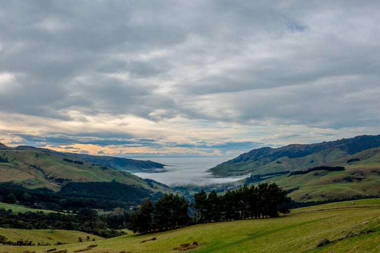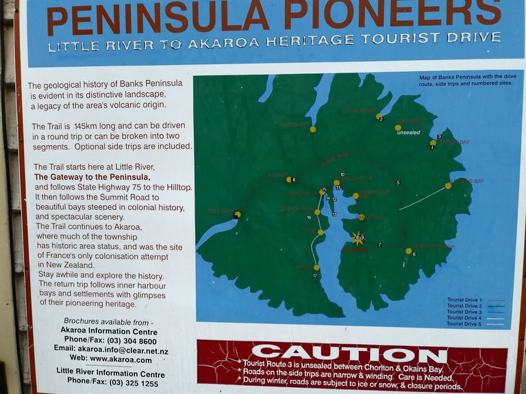 The area's unique blend of Māori, British, and French cultures has shaped its identity and charm. We enjoyed soaking in the picturesque beauty of the surrounding landscapes. To arrive we took the scenic Summit Road that turns off of hwy 75 and we were mesmerized by the beauty of the surrounding landscape.