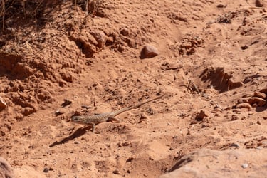 Next we walked to the other side of the parking lot to make our way to The Windows trail and walked to the North and South Window. These two arches are spectacular on their own but from some angles can look like eyes peering at you. These arches were a very unique sight to see. As we were hiking along we also got to see a little lizard on the trail.