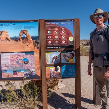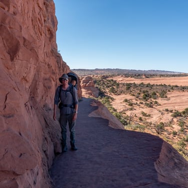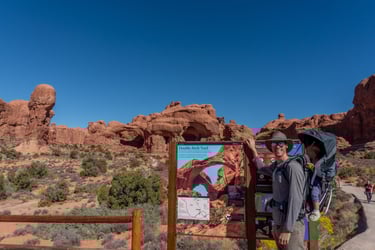 Next we hopped back in the car and drove down the Arches Scenic Drive and turned onto Delicate Arch Road. Delicate Arch, can be seen from a distance from the Upper and Lower Delicate Arch Viewpoints. But the best view of Delicate Arch is up close and personal, which requires doing a 5 km roundtrip hike.