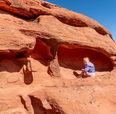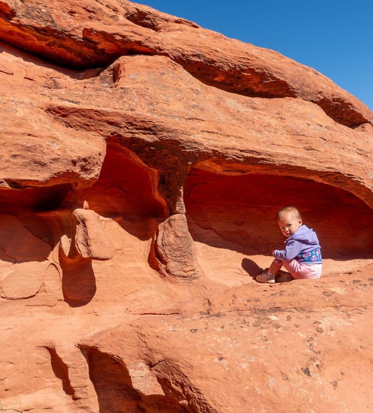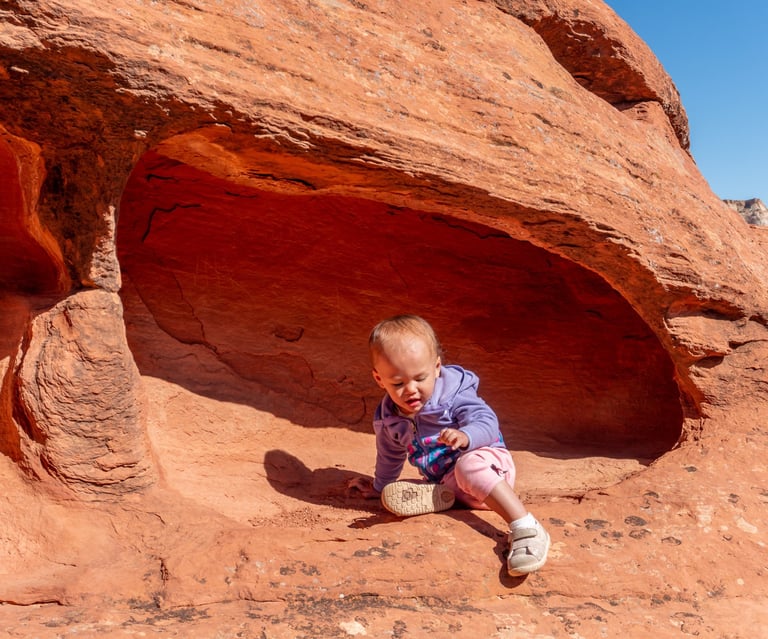 Just past the viewpoint of Cassidy Arch there is a shaded area that we had a light lunch. Aliya also got into the climbing and exploring of a couple of unique alcoves carved into the rock.