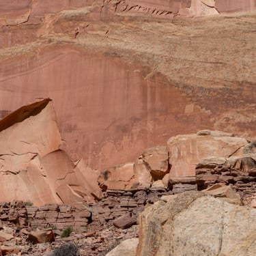 For thousands of years, people have called this verdant valley home and for our last stop in the park we explored the Petroglyph Panel where previous people had left their marks. The petroglyphs are along Utah State Route 24 and accessible by two wooden boardwalks. With the help of a pair of binoculars, we spotted some large human-like petroglyphs, as well as bighorn sheep petroglyphs, and other animals and geometric designs.