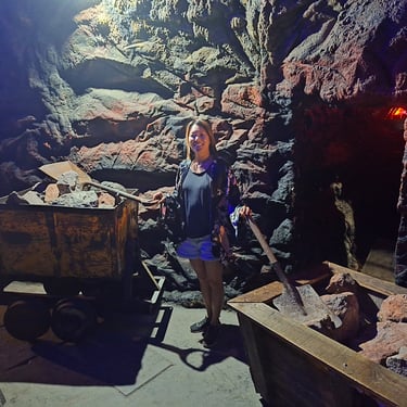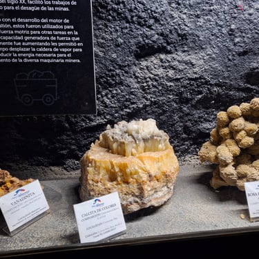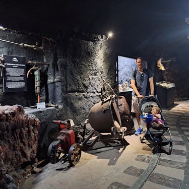 The 280 m long tunnel contains machines, tools and minerals that were donated by mining companies in the region. There are hydraulic hammers, iron tubs, drain pumps, mine carts and other historic memorabilia.