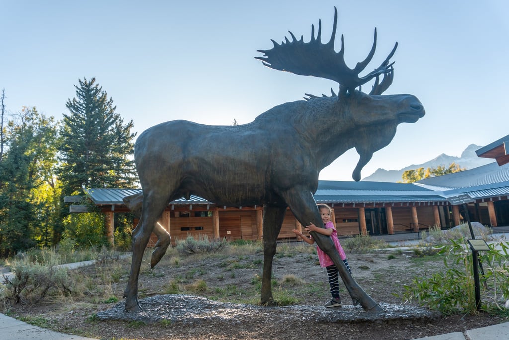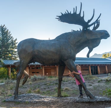 As we headed out of the park we stopped at the The Craig Thomas Discovery and Visitor Center. This facility provides detailed information on the local area and has a lifesize moose sculpture outside that Aliya had fun giving a big hug.