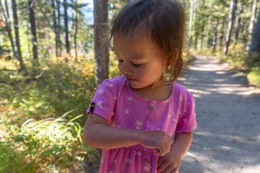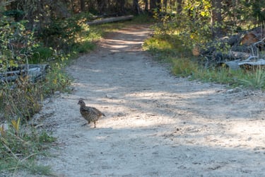 At the end of the day we hiked the area around String Lake. Along the trail we saw a Grouse, and Aliya made friends with a caterpillar. The trail had several great viewpoints and a spot where kayaker's and canoer's could launch their crafts into the lakes pristine water.