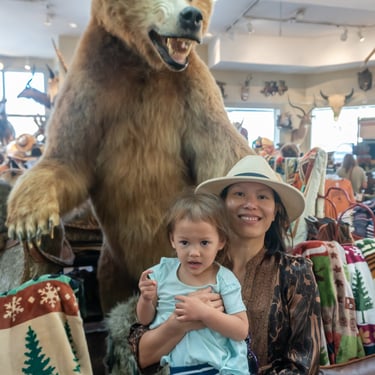 The unique stores in the town also provided many photo opportunities with Bison, Bears, as well as antler wreaths with lights.