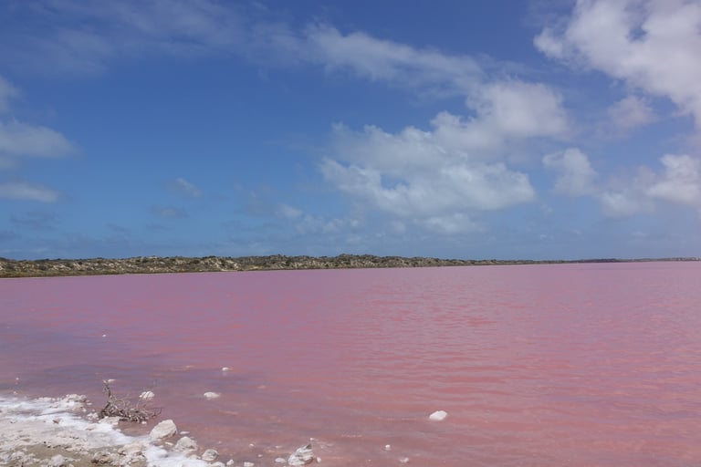 After the morning's excitement we had our own breakfast and began making our way down to the Hutt Lagoon. Even from the roadside we were able to see the pink hue in the lake. As we got out and explored, it was so unique to see so much salt built up around the edge, almost snow like. It was such a strange natural wonder to see.