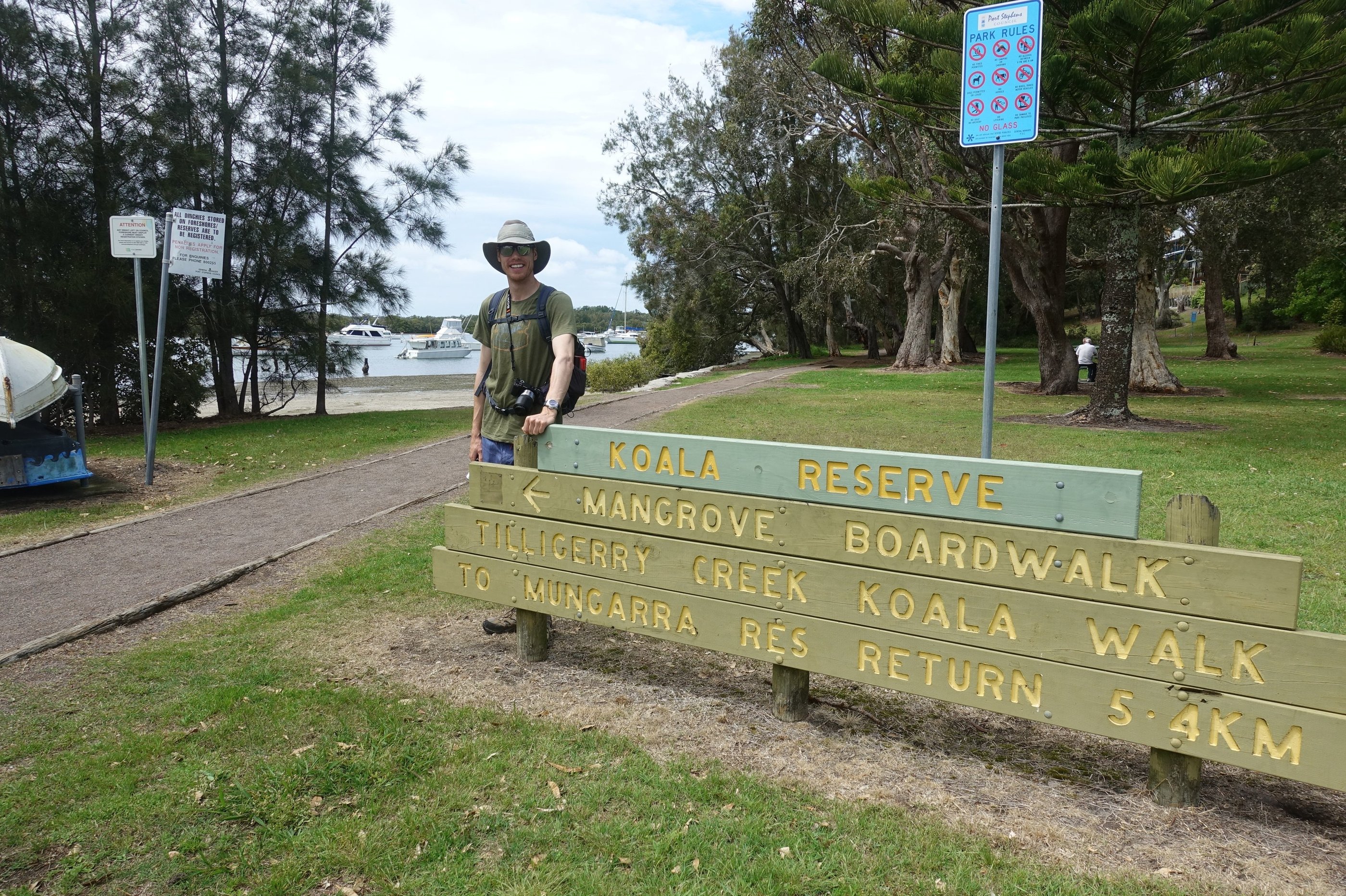 While heading up the East coast we were determined to spot a Koala outside of a zoo or fenced nature reserve. Just a little north of Newcastle we came across the Tilligerry Habitat area and were excited by all of the Koala signage located in and around the park. We kept our keen eyes open and looked from tree to tree in search spotting the little grey ball of fur.