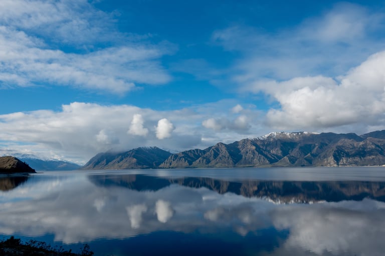 As we travelled up the south island I was looking for a good spot to spend a night. I found The Camp Holiday Park and booked a stay. When we arrived we were absolutely blown away by the beauty of Lake Hāwea. Surrounded by the Southern Alps, the mirror-like reflection of the grand mountain summits in the pristine waters of Lake Hāwea filled us with wonder.