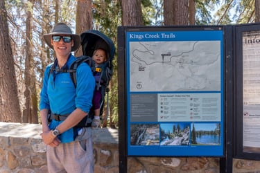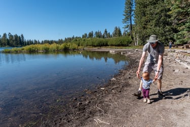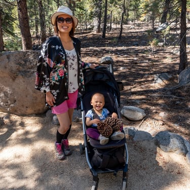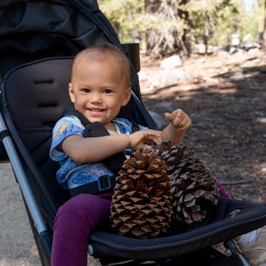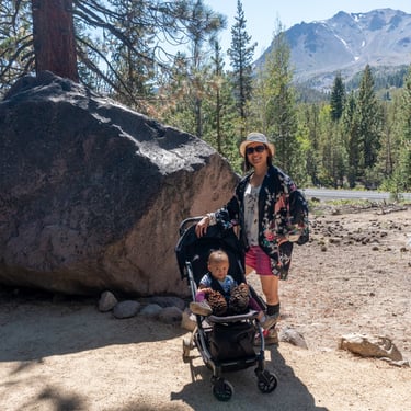 Whether you enjoy hiking, wildlife spotting, or simply marveling at the awe-inspiring volcanic features, Lassen Volcanic National Park offers an unforgettable experience for all. We explored the stroller-friendly Devastated Area Trail at Lassen volcanic national park. Aliya had fun finding giant pinecones while we stood next to giant volcanic boulders that landed in this area. On the trail we learned about the 1914-1917 volcanic eruptions at Lassen National Park.