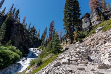 There were areas of the trail that had managed to avoid the impacts of the fire and near the creek and lake were lush and green with an abundance of local vegetation.
