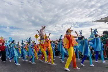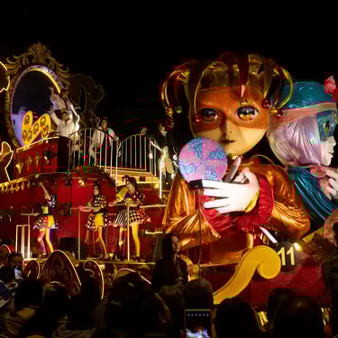 The Sunday night parade was absolutely stunning! We were utterly captivated by the intricate decorations adorning the floats and the dazzling array of costumes. The atmosphere was electric, with an undeniable energy permeating the air. The streets glowed with the sparkle of vibrant costumes and radiant smiles all around.
