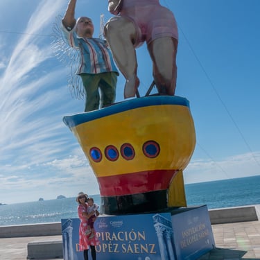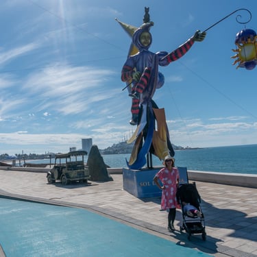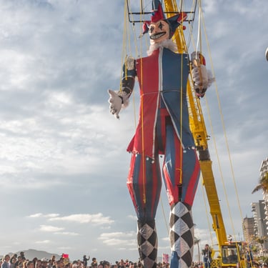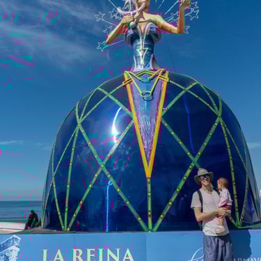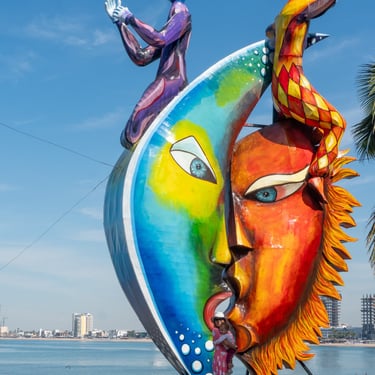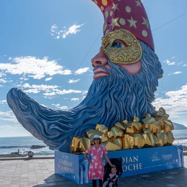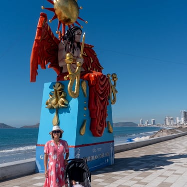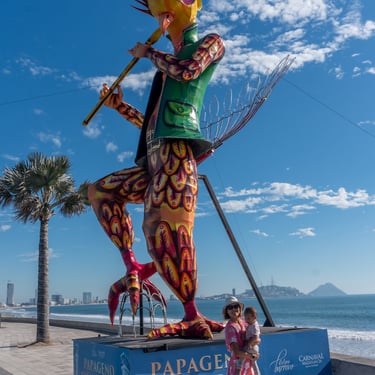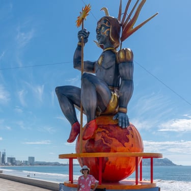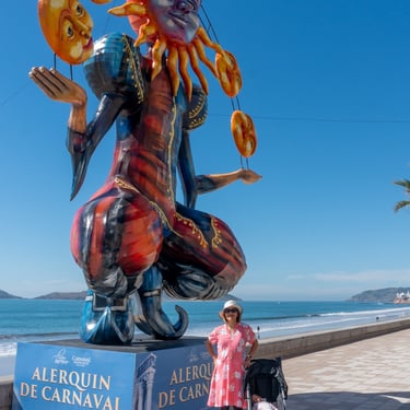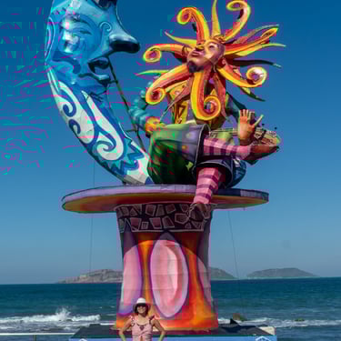 Below is a collage of giant Monigotes that highlight the theme of the carnival. These giant Monigotes made their grand appearance several weeks before the start of the carnival along the malecón. The majority of them were placed along the waterfront, and one was placed at the famous Plazuela Machado. The theme for this year's carnival was the Solar Eclipse, inspired by the upcoming celestial event in Mazatlán. Depictions of the sun and moon have been cleverly woven into the displays, adding a touch of cosmic wonder to the carnival festival.