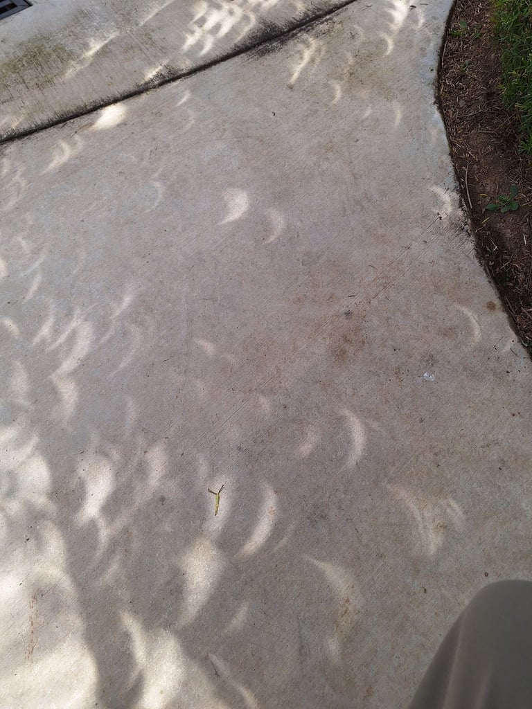 Unfortunately we didn't bring any specialized camera gear to capture images of the sun as the moon moved across or totality. Leading up to the moment of totality you could see the effect the moon was having on the shadows with the crescent shape.