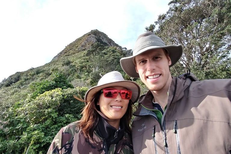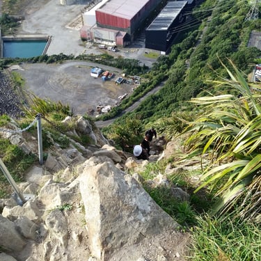 Hiking a near vertical trail in New Plymouth New Zealand