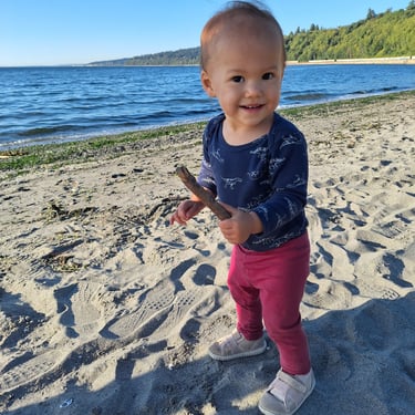 Luckily Seattle's typical rainy weather was nowhere to be seen and we were able to enjoy great views of the city from some of their iconic lookout points. Our first stop in the north of Seattle was Carkeek Park. This is a beautiful park 9 miles northwest from downtown Seattle. The park has picnic tables and playgrounds perfect for family gatherings. The park has a popular slide that is made of rocks and is in the shape of a salmon. Aliya enjoyed drawing on the sand while admiring the extraordinary views of Puget Sound and the Olympic Mountains at Carkeek Park Beach.
